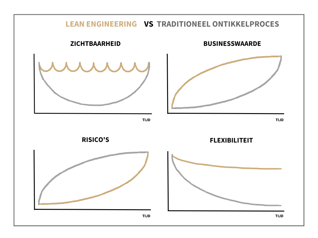 Met Lean Engineering bent u niet langer afhankelijk van een volledige investering voordat aannames en oplossingen bewezen zijn. Het vroegtijdig bewust worden van eventuele risico’s vergroot de slagingskans van uw project aanzienlijk.